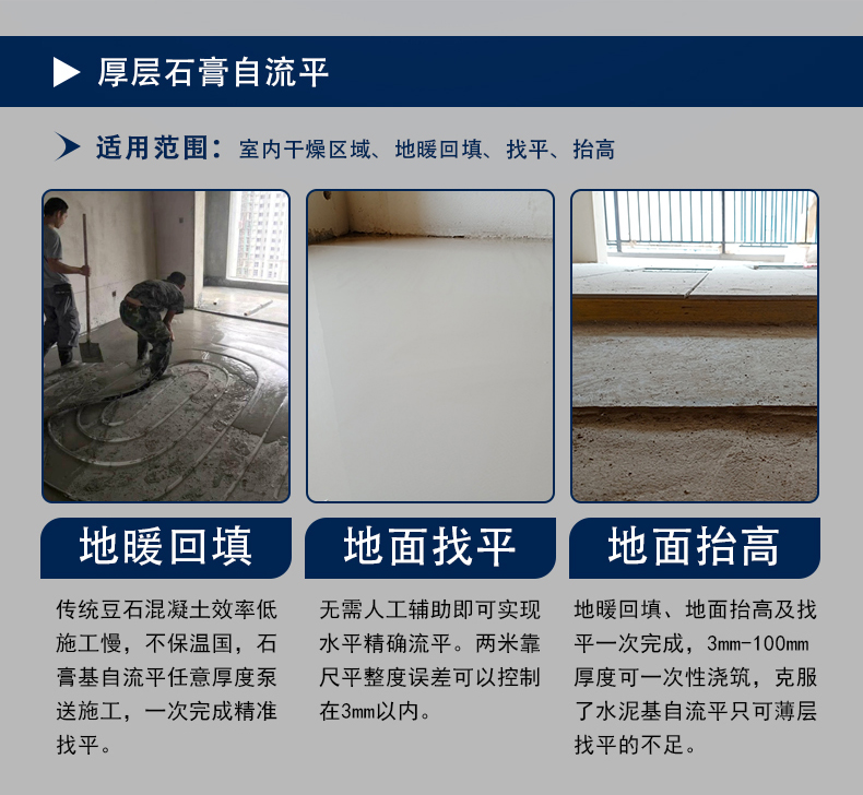石膏基自流平砂漿的主要膠凝材料是石膏,并且具有自動流平的性能,具有以下優點: